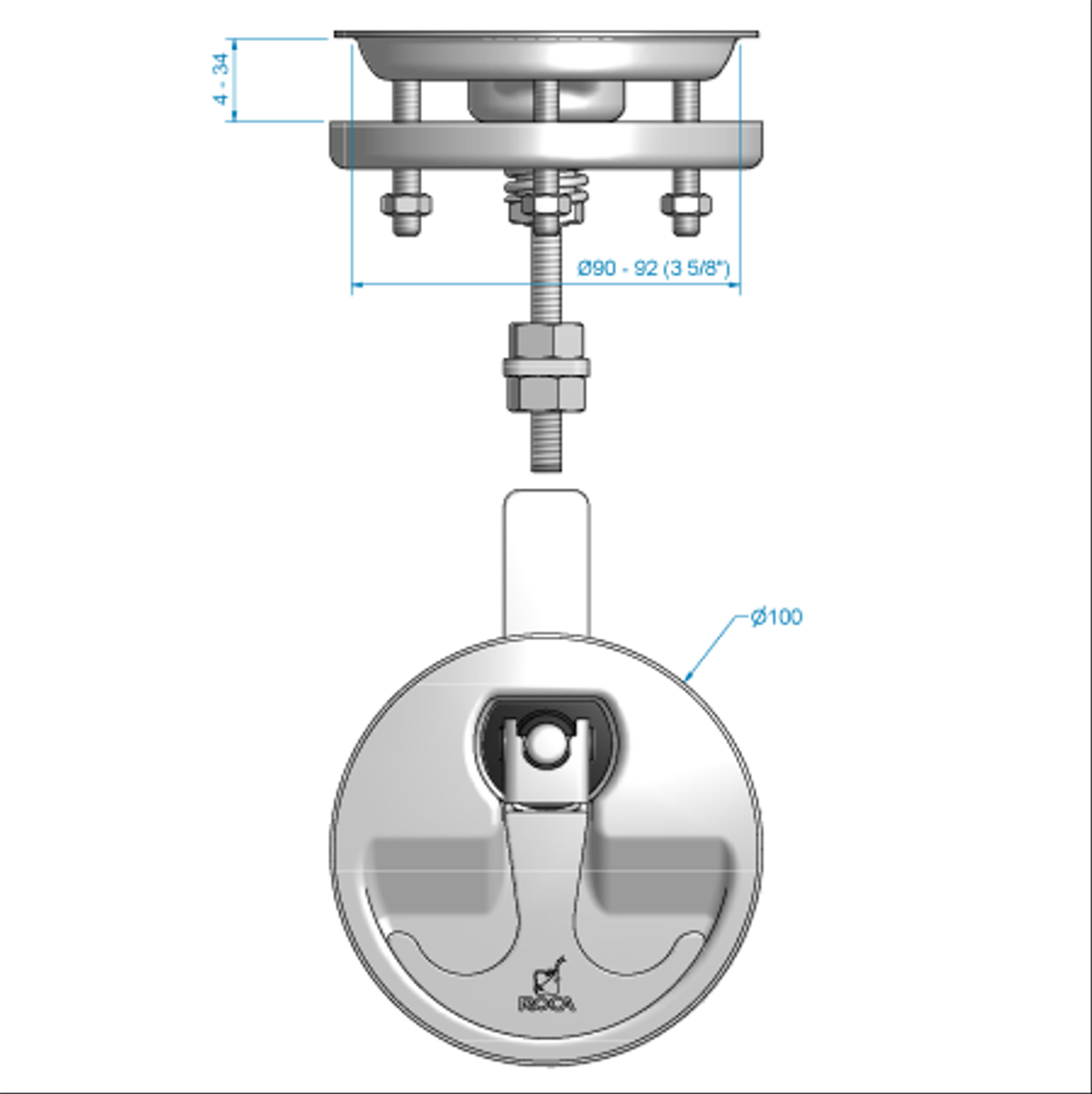 Lyfthandtag diameter 100 mm. Håltagning diameter 90-92 mm. Rostfritt SIS 2343, elpolerad. Regel ingår ej.