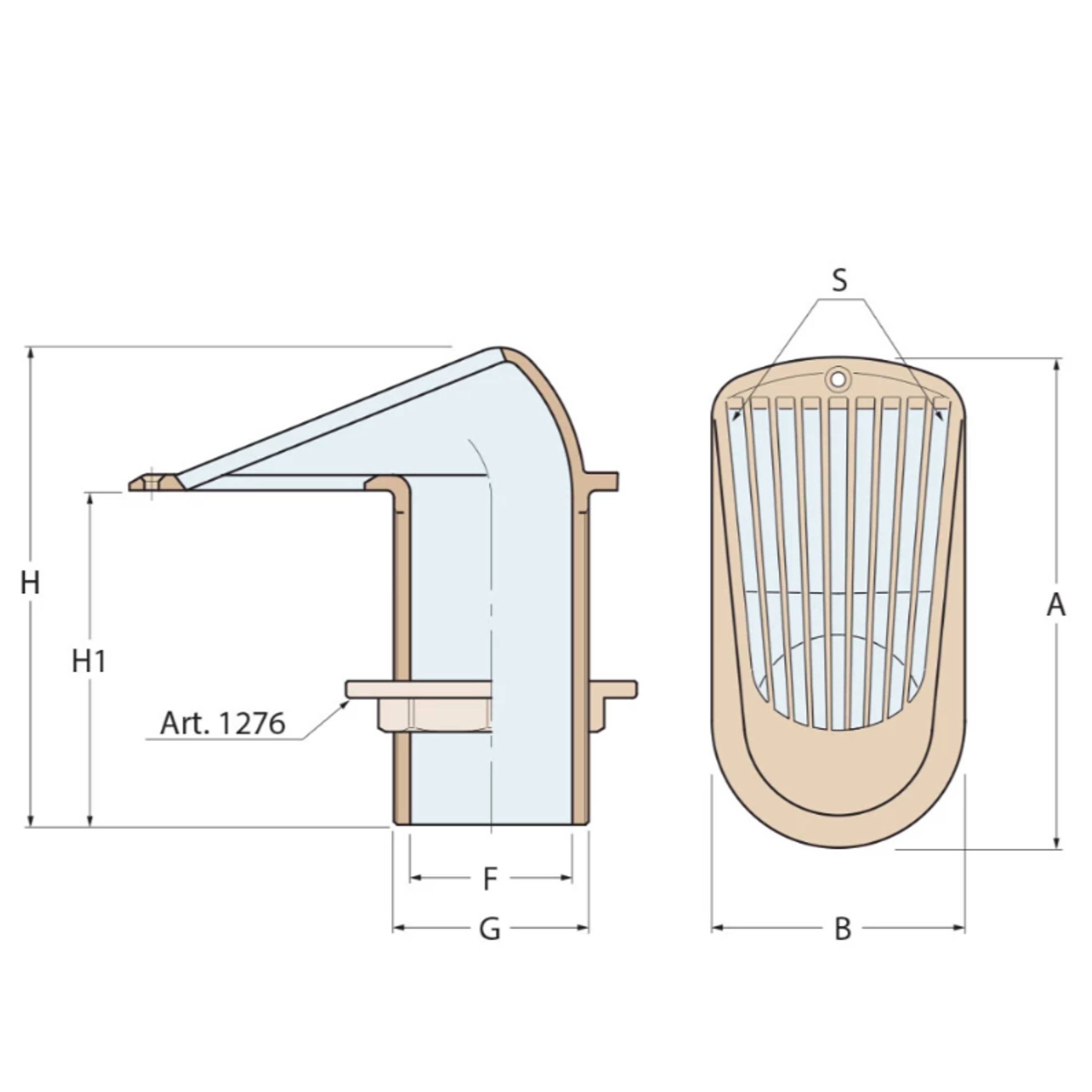 Artnr | G (BSP) | G (mm) | A (mm) | B (mm) | F (mm) | H (mm) | H1 (mm) | S (cm²) |