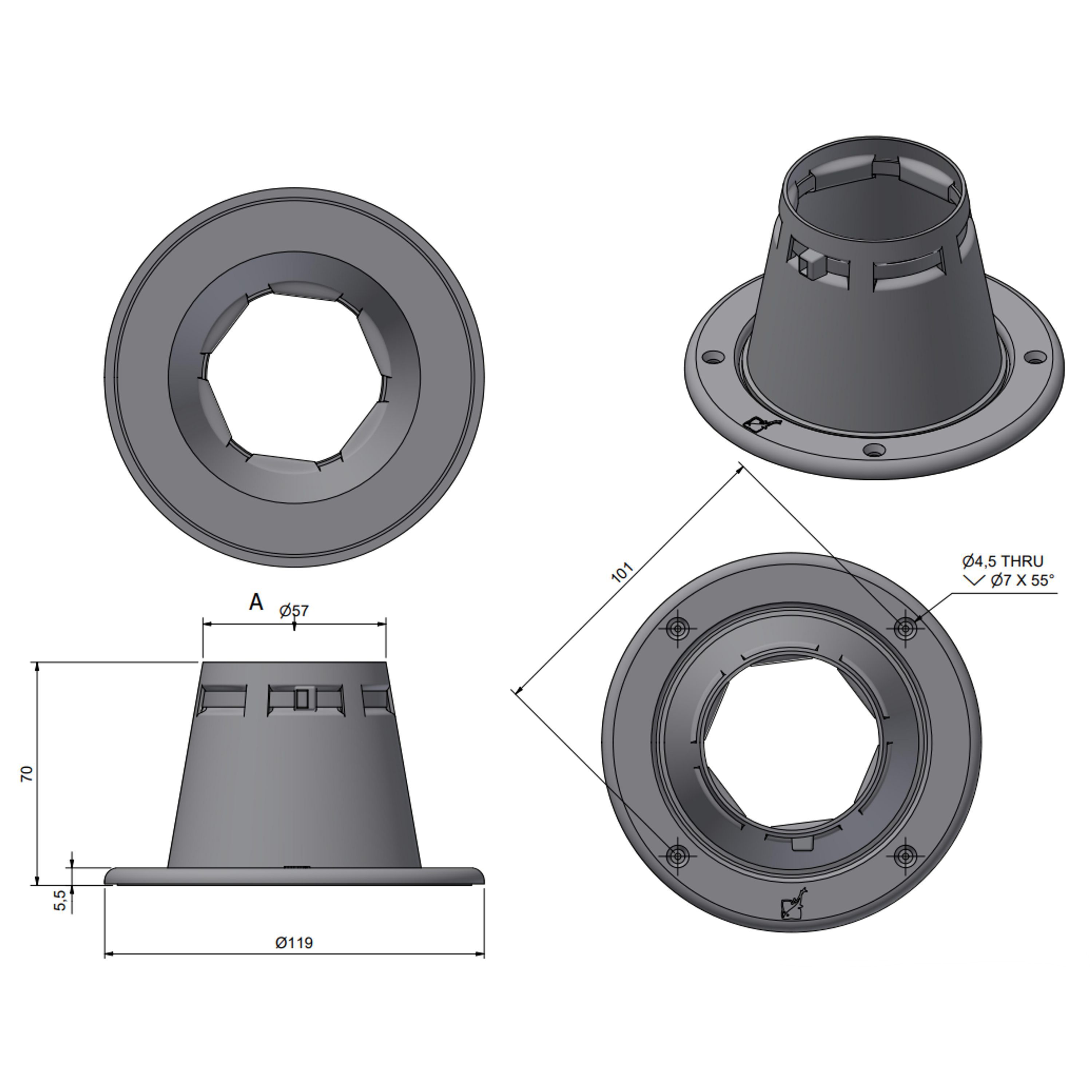 Material: PVC. SHORE 78-80, svart inkl. monteringsring.