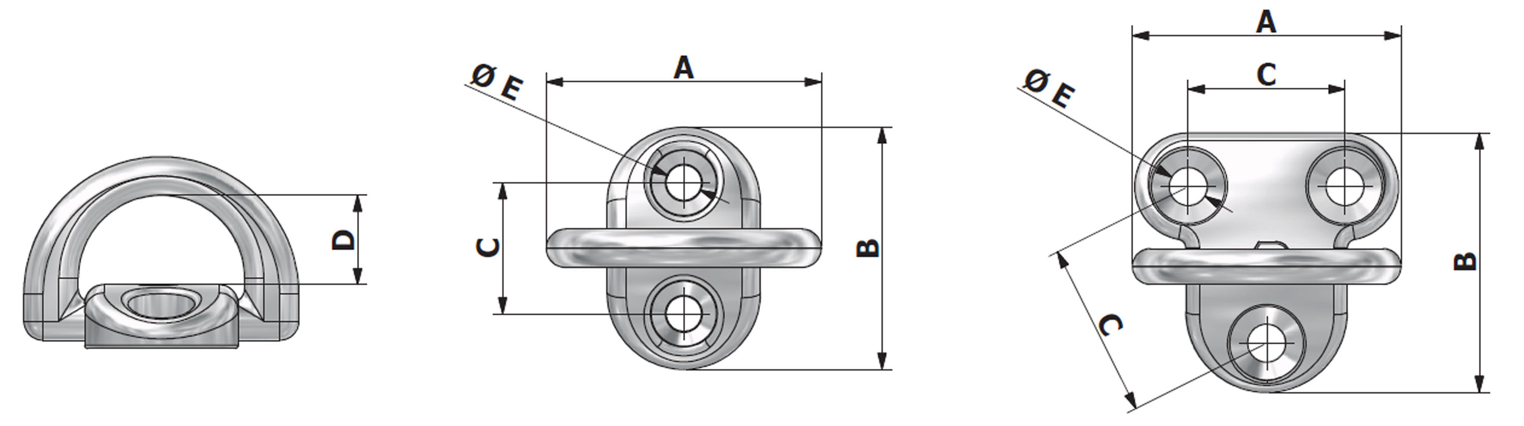 Padeye, 3 fästhål, 3500 kg369 krI lager (4)