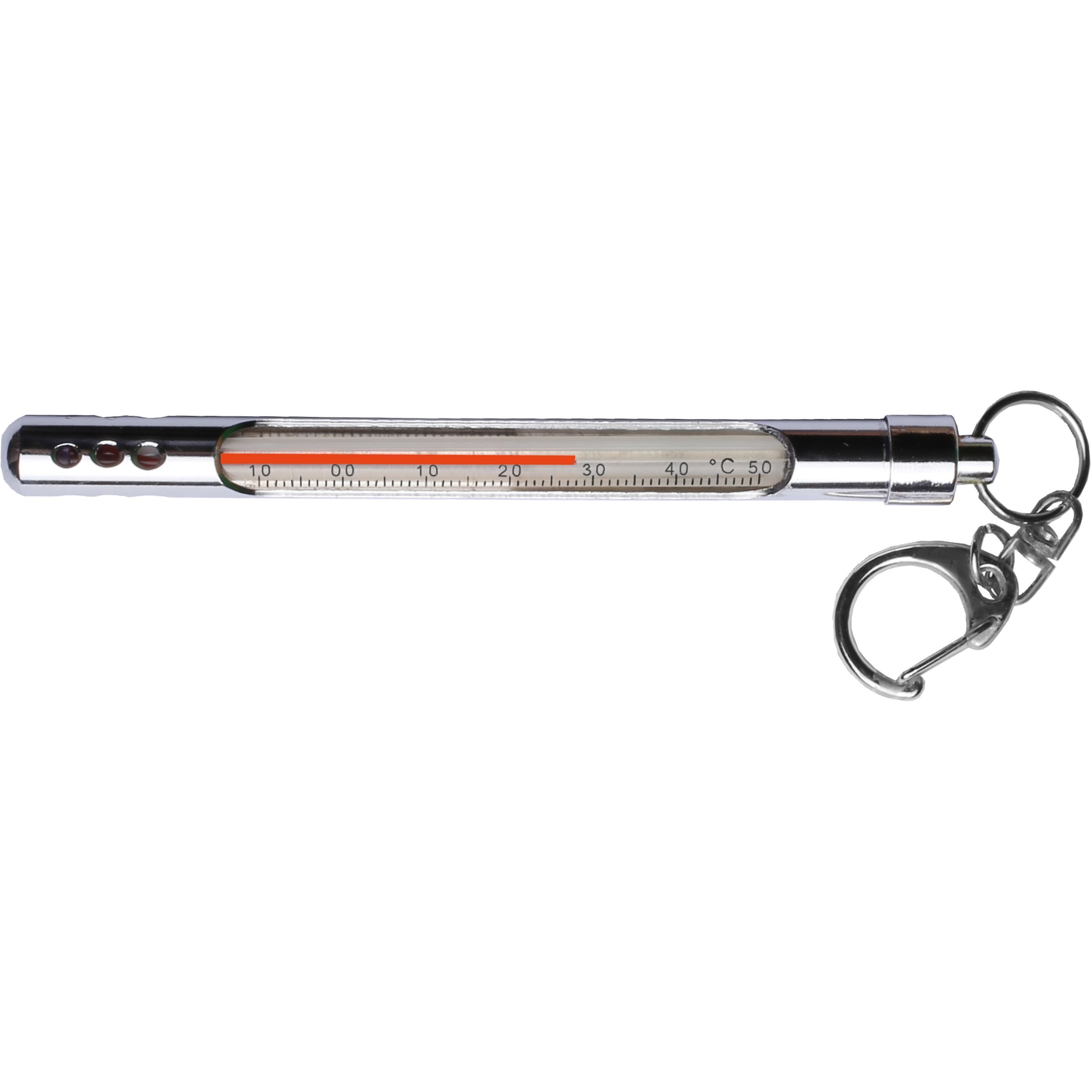 Termometer med längd på 12 cm för att mäta vattentemperatur.